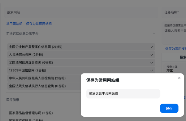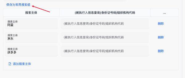 - 在输入核查主体后,点击“保存为常用搜索组”按钮。