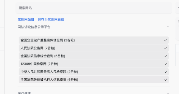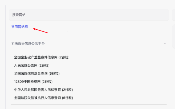 为了提高效率,您可以将常用的核查网站保存为一个网站组。操作步骤如下: