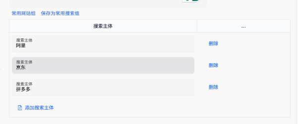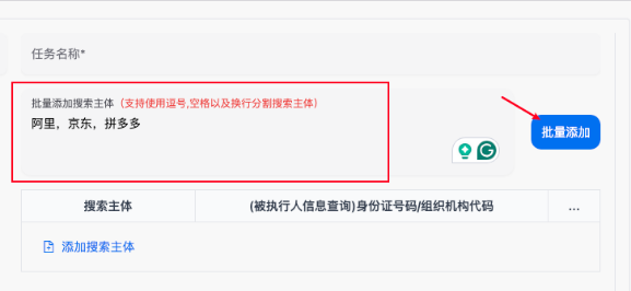 - 在输入框中输入多个搜索主体,可以使用逗号、空格或换行分隔每个搜索主体。