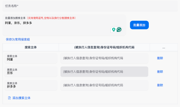 - 系统将自动填入这些搜索主体,您可以直接进行核查。
